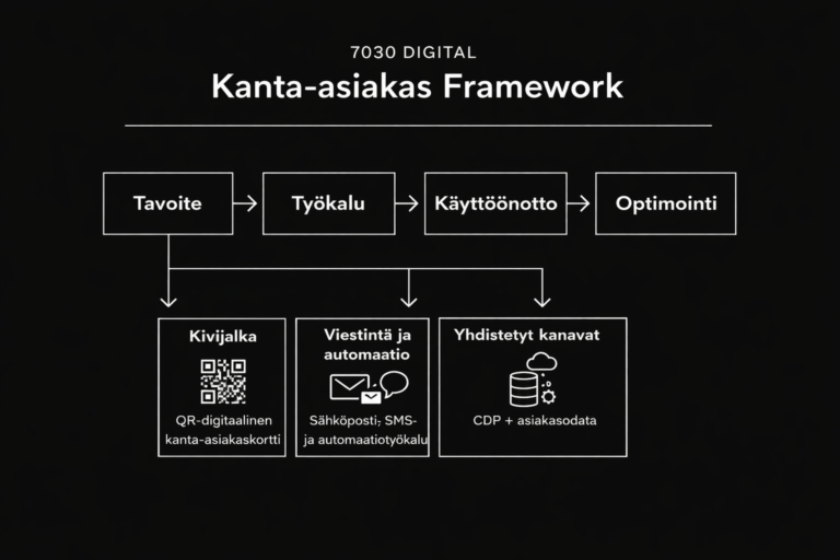 Hyvin rakennettu kanta-asiakasohjelma tuottaa strategista etua, sillä omistettu asiakasdata antaa yritykselle hallinnan asiakassuhteista ilman riippuvuutta ulkopuolisista alustoista, kuten Meta tai Google. Samalla se syventää asiakassuhdetta: yksittäisten ostotapahtumien sijaan syntyy jatkuva, arvoa tuottava vuorovaikutus, jopa dialogi. Vaikka kanta-asiakasohjelman käynnistäminen vaatii investointeja, sen tuotto-odotus on selkeä – asiakkaiden pysyvyys paranee, ostotiheys kasvaa ja markkinointi kohdentuu tarkemmin.